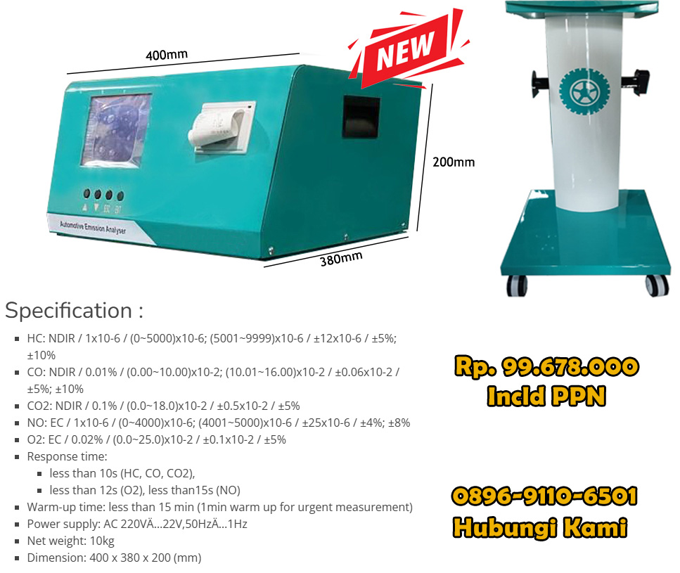 Cosber Alat analisa exhaust emisi gas buang model CSB 4/5 M dibuat di perusahaan kami yang dirancang untuk mengukur konsentrasi CO, CO2 dan HC dengan menggunakan metode non-disperse infrared (NDIR) dan untuk mendeteksi O2, NOx dengan menggunakan metode sel elektrokimia. Bangkunya diimpor dari Jepang dan sensornya diimpor dari Jepang.