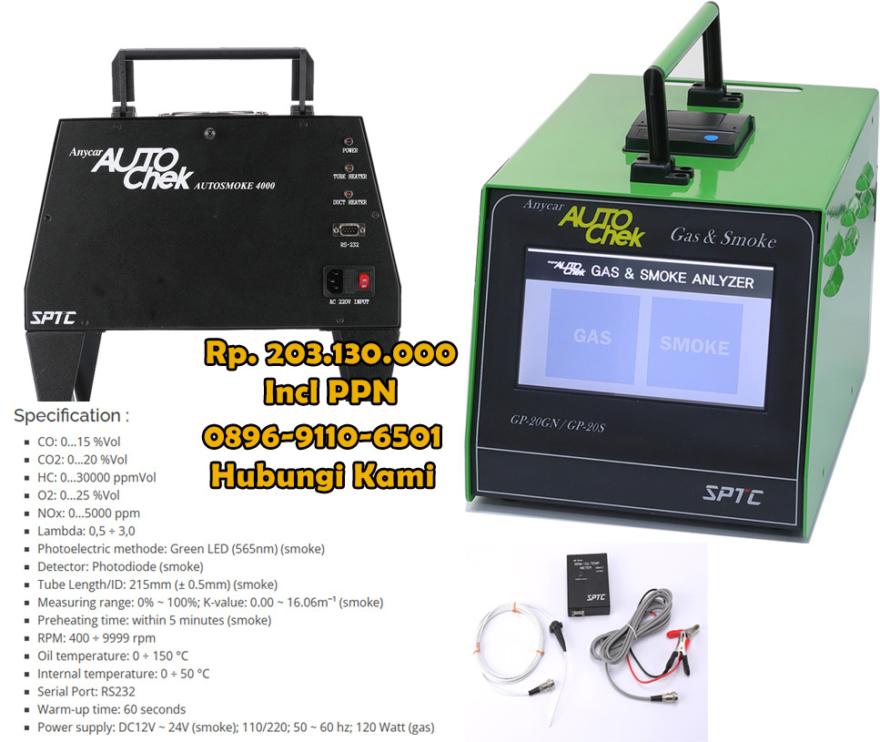 Autocheck Model GP-20GN/GP-20S Gas & Smoke Analyzer adalah kombinasi 2 (dua) alat yang dipadukan dalam satu sistem yang mengintegrasikan Gas (CO, CO2, HC, O2, Nox, Lamda, atau AFR) untuk mengukur gas buang kendaraan mobil Bensin atau LPG/CNG dan kendaraan DIESEL/SOLAR (Smoke Opacity) sebagai satu kesatuan.